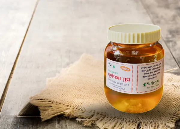 Sanjeevan Ghee is a pure cow’s ghee infused with the goodness of Tulsi, Vat and Vidari. This makes it a very essential health-promoting product for everyone.